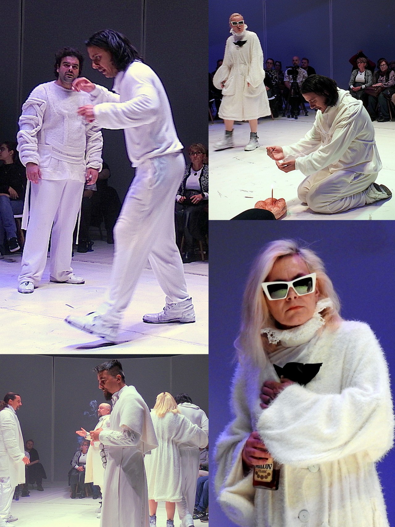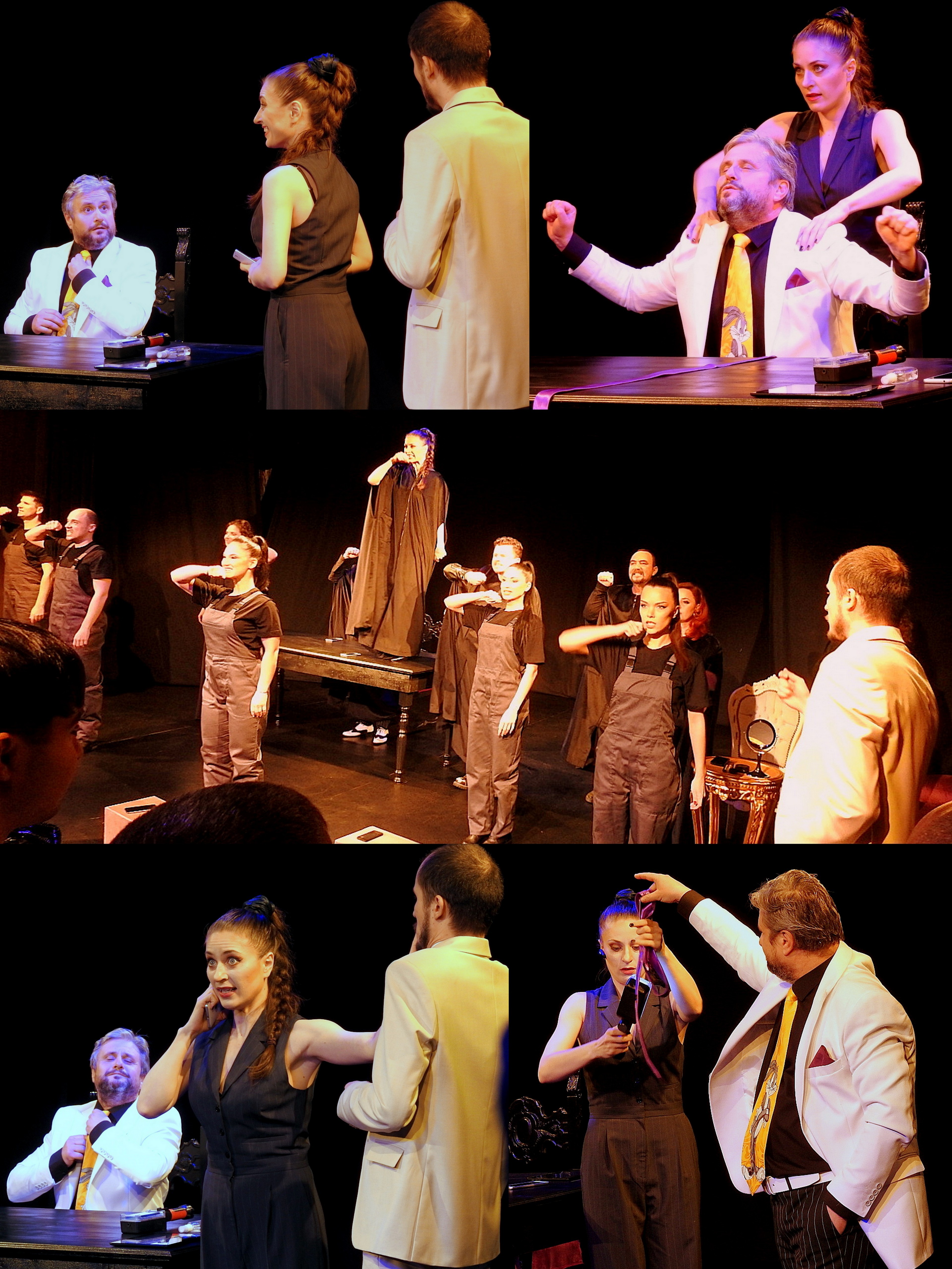 Am văzut la viața mea câteva spectacole cu atmosferă apăsătoare, spectacole care aveau momente care-ți tăiau răsuflarea sau te uluiau: spectacole de Roman Viktiuc de Radu Poclitaru, de Andrij Zsoldak (și elun produs made in GITIS), de Ricci&Forte, de Antonio Latella, de Petru Vutcărău (nume care nu spun prea multe spectatorului român dar sunt foarte mari regizori, autori de spectacole de referință pentru începutul mileniului III, care –din păcate- au ajuns foarte rar și pe la noi). Ei bine, Dumitru Acriș știe să creeze atmosferă apăsător-acaparatoare, reușește să prindă publicul și să nu-l mai lase din mână (și din urzeala dramatică) până la aplauzele de final. Pentru această capacitate o avea poate vreo “vină” școala rusă de teatru pe care -cu mânie (sau MANIE?) geto-dacă- o blamăm din răsputeri, ca pe orice vine de la Moscova… Păăi, dacă astea-s ordinele AMBASADEI…
