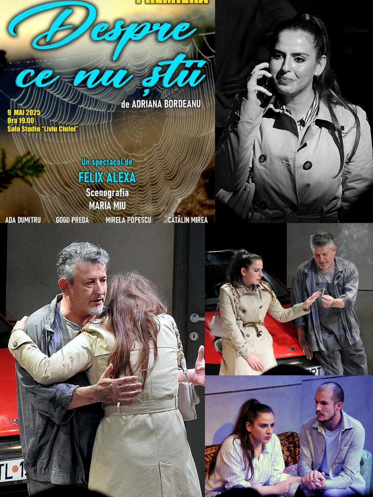 Nu fără o puternică motivație tema celei de-a XXVIII-a ediții a Festivalului Internațional de Teatru de Studio (din 9 – 18 Mai 2025) s-a numit FRAGILITATE. Și nu fără un motiv serios în deschiderea festivalului (chiar în 9 mai, de Ziua Noastră, a europenilor) a fost programat spectacolul „Despre ce nu ştii” de Adriana Bordeanu. Dacă omul ca ființă -cum susține(a) prietenul BLAISE- e fragil ca o trestie, reuniunea a doi oameni este –indiferent de forma și tipul reuniunii- muuult mai fragilă. Povestea imaginată de Adriana Bordeanu nu este tocmai inedită, am mai auzit, am mai citit, am mai văzut filme pe tema acelor schelete (bine și demuuult) ascunse prin dressig room-uri. Schelete care într-un anumit moment –ales de autor/scenarist- plictisite sau enervate să stea degeaba la păstrare, ies să ia puțin aer, provocând crize de diverse facturi și anverguri. Uneori crize mai ușoare, alteori chiar de-a dreptul cutremure familiale sau/și cataclisme conjugale. Totul conform celor scrise în scenarii sau în stele.