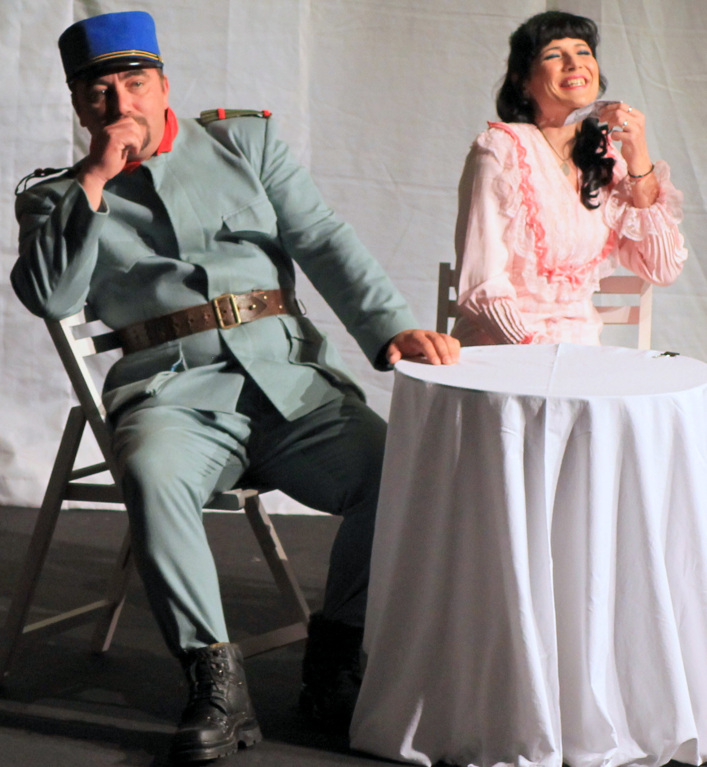 Practic abandonaţi de text şi regizor actorii sunt „pe cont propriu” şi dintr-o asemenea lipsǎ de idei textuale şi scenice „scapǎ cine poate” şi cum poate, trǎiascǎ iniţiativa individualǎ. Se agitǎ şi ei pe scenǎ cum pot mai bine ca sǎ se „scoatǎ” cumva din nişte roluri din care nu poţi pricepe prea multe actori care meritau nişte partituri pe mǎsura talentului probat cu alte ocazii: Cătălin Mirea, Robert Tudor, Dan Ivănesei, Mirela Cioabă, Iulia Dumitru, Dan Andrei, Lia Deaconu, Cornelia Niculescu, Mirela Popescu, Ioana Podăreanu, Gabriela Stanciu, Tudoriţa Popescu şi Puiu Mărgescu… Nici poveste despre acea „viaţǎ de soldat” sau despre un (alt)fel de Svejk… O însǎilare de situaţii nelegate, netratate şi netraduse în vreun fel pentru public… Nici nu mǎ mai g încerca actorii puşi sǎ facǎ astfel de şotii scenice; aşa le trebuie dacǎ au acceptat sǎ joace aşa ceva! Ar mai trebui s-o amintesc pe scenografa Miruna Varodi care mǎcar trateazǎ în cheie parodicǎ decorul, ca şi unii actori “rolurile” acestui nereuşit vodevil. N-aş putea spune cǎ spectacolul nu are moment de înǎlţime, câtǎ vreme Dan Andrei şi Robert Tudor (nu mǎ ostenesc sǎ notez personajele) îşi ridicǎ partenerele în braţe, le poartǎ pe umǎr, le saltǎ… Și poate cǎ le şi aduce ceva senzaţii şi adrenalinǎ purtatelor/ sǎltatelor pe braţe Cornelia Niculescu, Lia Deaconu, Iulia Dumitru numai sǎ nu le scape partenerii de scenǎ, da sper sǎ nu mai aibǎ multe ocazii (în acest spectacol)…”
